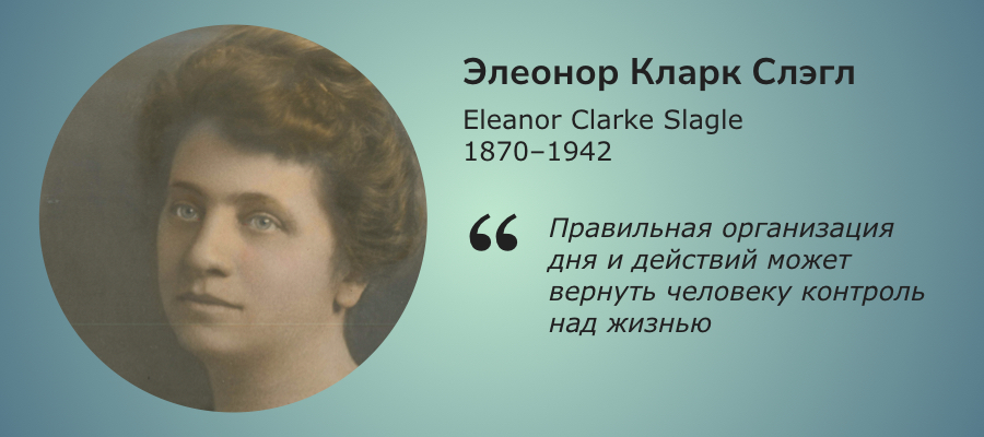 Элеонор Кларк Слэгл — одна из основательниц современной эрготерапии и ключевая фигура в истории профессии. Слэгл начинала как социальный работник и психолог, но вскоре заинтересовалась тем, как активность и структура дня влияют на психическое здоровье. В 1912 году она создала программу «обучения привычкам» (habit training) для пациентов психиатрических клиник — именно этот подход лег в основу эрготерапии как метода восстановления через повседневную деятельность. Позже Слэгл стала президентом Американской ассоциации эрготерапевтов (AOTA) и организовала первую профессиональную школу для подготовки терапевтов.